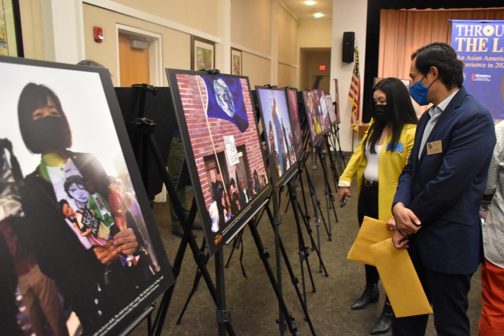 2022年5月21日,在美國加利福尼亞州洛杉磯縣阿卡迪亞市,人們參觀“鏡間:亞裔美國人的2021”攝影展。新華社發(fā)(曾慧攝)