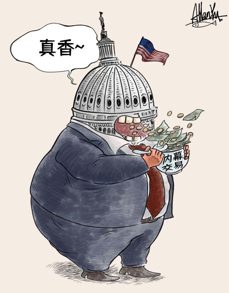 美國(guó)政客“點(diǎn)石成金”的背后,是利用內(nèi)幕交易中飽私囊的黑暗勾當(dāng)。這再次證明,美國(guó)的“金錢(qián)政治”不僅意味著“政治離不開(kāi)金錢(qián)”,也意味著一些人“從政就是為了金錢(qián)”。