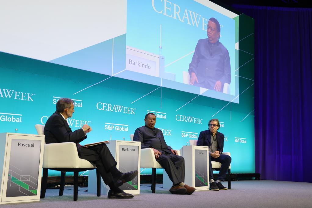 圖為2022年3月8日,石油輸出國組織(歐佩克)秘書長巴爾金多(中)在美國休斯敦出席劍橋能源周會議并發(fā)表講話,他重申當(dāng)前世界沒有能夠替代俄羅斯石油出口份額的產(chǎn)能,呼吁不把能源政治化。新華社記者徐劍梅攝