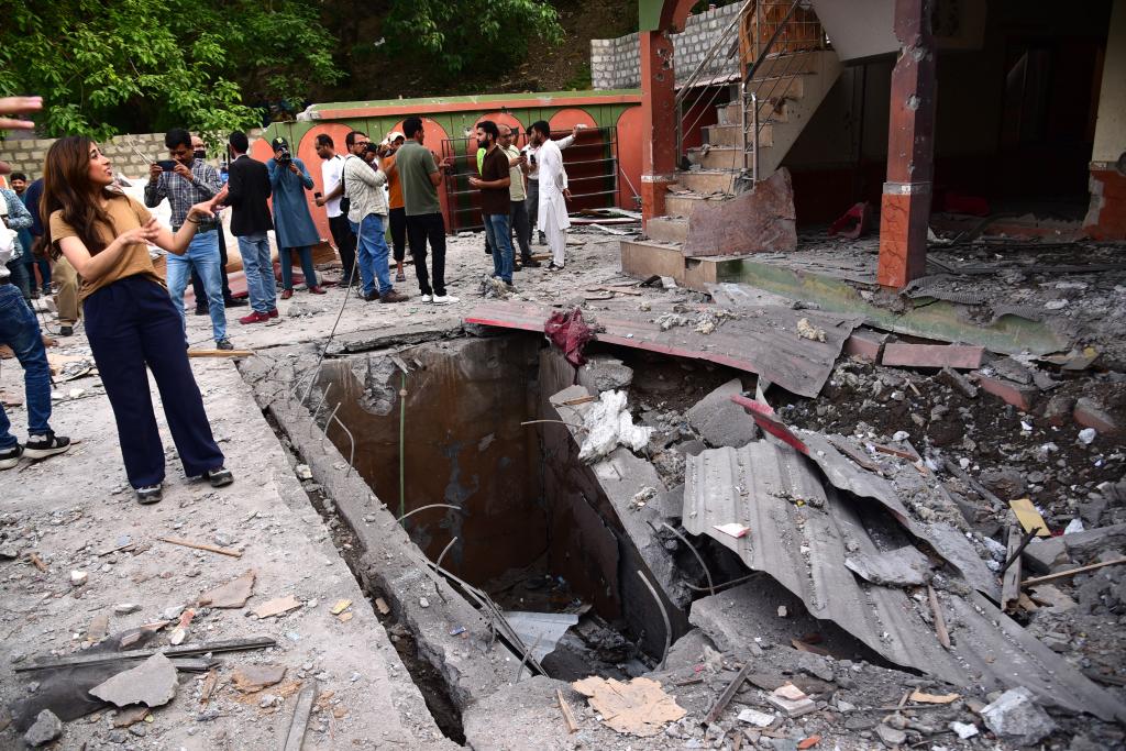 這是5月7日在巴控克什米爾地區(qū)首府穆扎法拉巴德拍攝的遭印度空襲的建筑。新華社發(fā)(穆罕默德·丁·穆加爾攝)