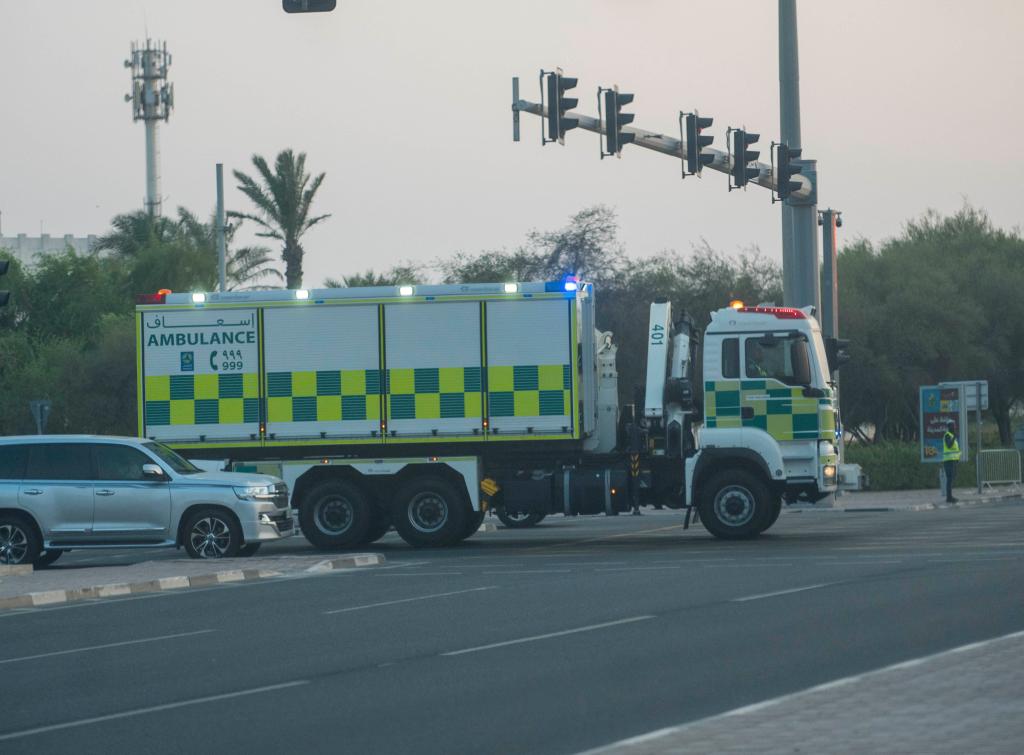 9月9日,在卡塔爾首都多哈,一輛急救車(chē)到達(dá)事發(fā)現(xiàn)場(chǎng)附近。新華社發(fā)(尼庫(kù)攝)