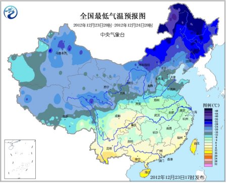 氣象專家介紹,目前,北京、天津、河北、山西、遼寧大部、陜西南部和山東大部地區(qū)已經(jīng)達(dá)到了今年入冬以來(lái)的最低氣溫。以北京為例,12月8日北京的最低氣溫達(dá)到零下9℃,而12月23日更達(dá)到零下12℃。雖然此次寒潮天氣過(guò)程即將結(jié)束,但由于受輻射降溫的影響,北京的溫度依然會(huì)繼續(xù)走低,24日將達(dá)到零下15℃。