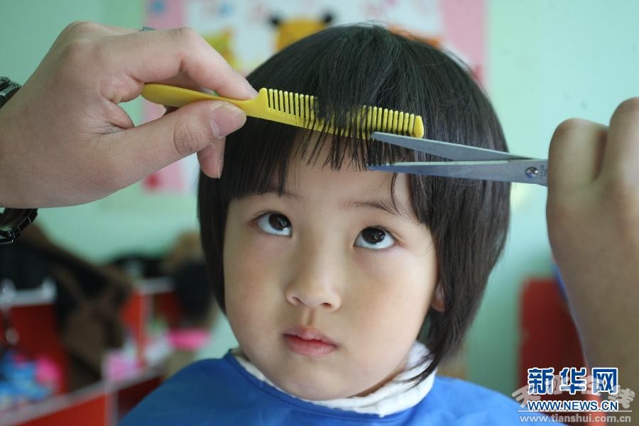 3月13日,在山東省煙臺(tái)市芝罘區(qū)快樂起航幼兒園,理發(fā)師在為一名小朋友理發(fā)。當(dāng)日是農(nóng)歷二月初二,我國民間有“二月二,剃龍頭”的傳統(tǒng)習(xí)俗。人們?cè)谶@天剃頭,期盼新年新氣象,交上好運(yùn)氣。 新華社發(fā)(申吉忠攝)