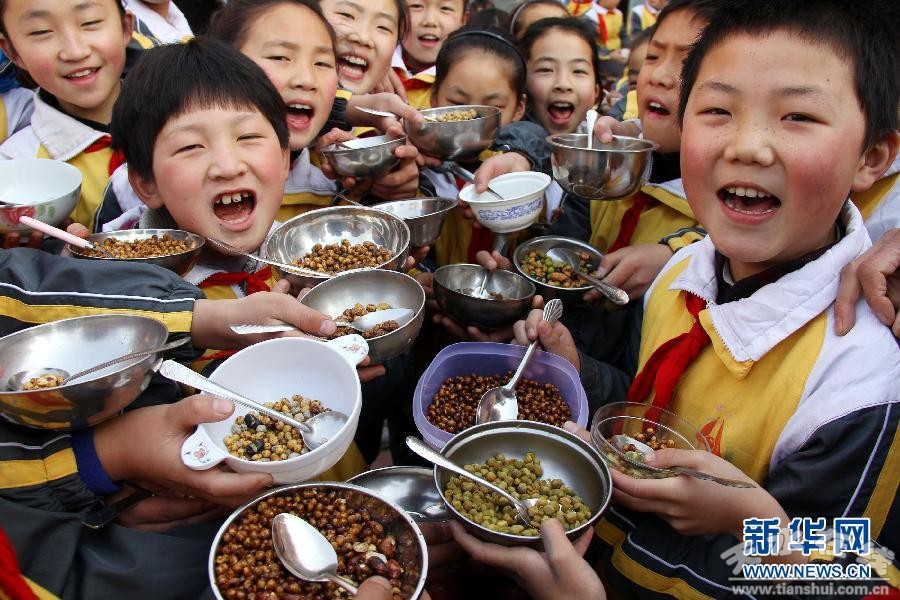 3月13日,山東省棗莊市市中區(qū)紅旗小學(xué)的學(xué)生在展示從家里帶來的“糖豆”。當(dāng)日是農(nóng)歷二月初二,山東省棗莊市市中區(qū)紅旗小學(xué)開展“二月二賽‘糖豆’”活動。小學(xué)生們相互品嘗從家中帶來的“糖豆”,比賽看誰家炒的“糖豆”香、甜、酥、色彩鮮亮。山東部分地區(qū)有“二月二炒料豆”的習(xí)俗,現(xiàn)已習(xí)慣稱為“糖豆”。相傳古時人們在農(nóng)歷二月初二炒玉米、黃豆而讓“金豆開花”,解除了壓山符咒,解救了因擅自降雨解旱而被壓山下的龍王,并相沿成俗! ⌒氯A社發(fā)(孫中喆 攝) |