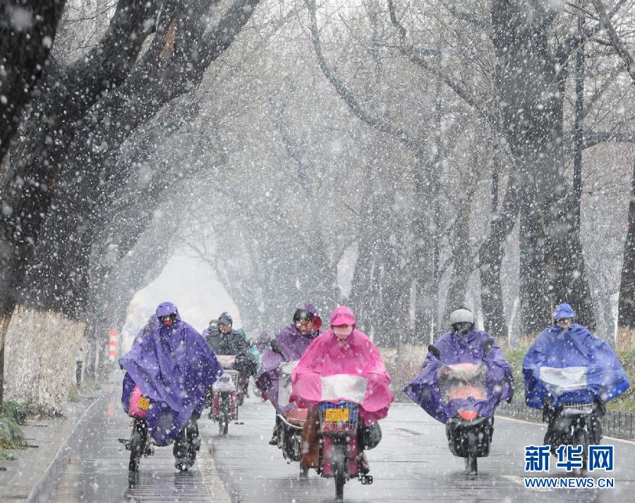 2月18日,人們在江蘇蘇州街頭冒雪騎行。當(dāng)日,我國南方多地迎來新一輪雨雪天氣,江蘇、浙江等多省發(fā)布暴雪預(yù)警。 新華社發(fā)(杭興微 攝)
