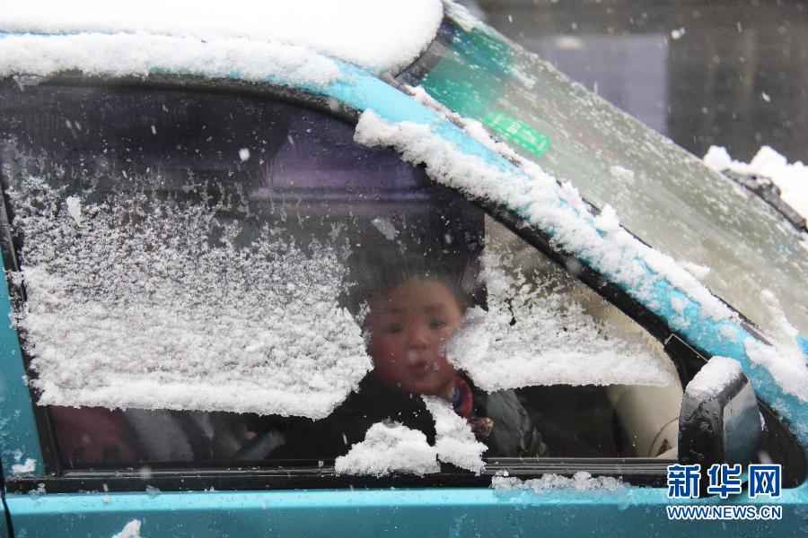 2月18日,在浙江省臨安市街頭,一名小朋友從落滿積雪的車窗向外張望。當(dāng)日,我國南方多地迎來新一輪雨雪天氣,江蘇、浙江等多省發(fā)布暴雪預(yù)警。 新華社發(fā)(胡劍歡 攝)