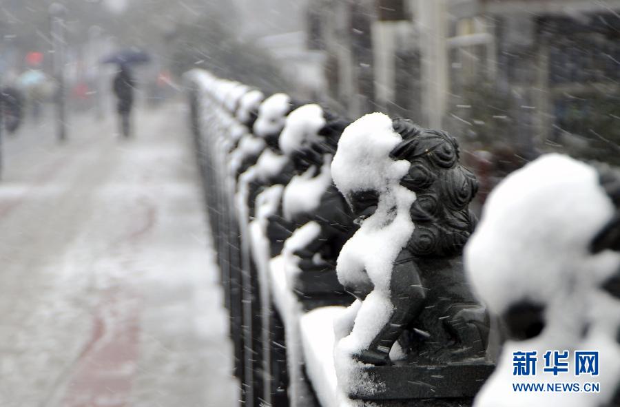 2月18日,江蘇揚州飛鶴橋上的石獅子落滿積雪。當(dāng)日,我國南方多地迎來新一輪雨雪天氣,江蘇、浙江等多省發(fā)布暴雪預(yù)警。 新華社發(fā)(劉江瑞 攝)
