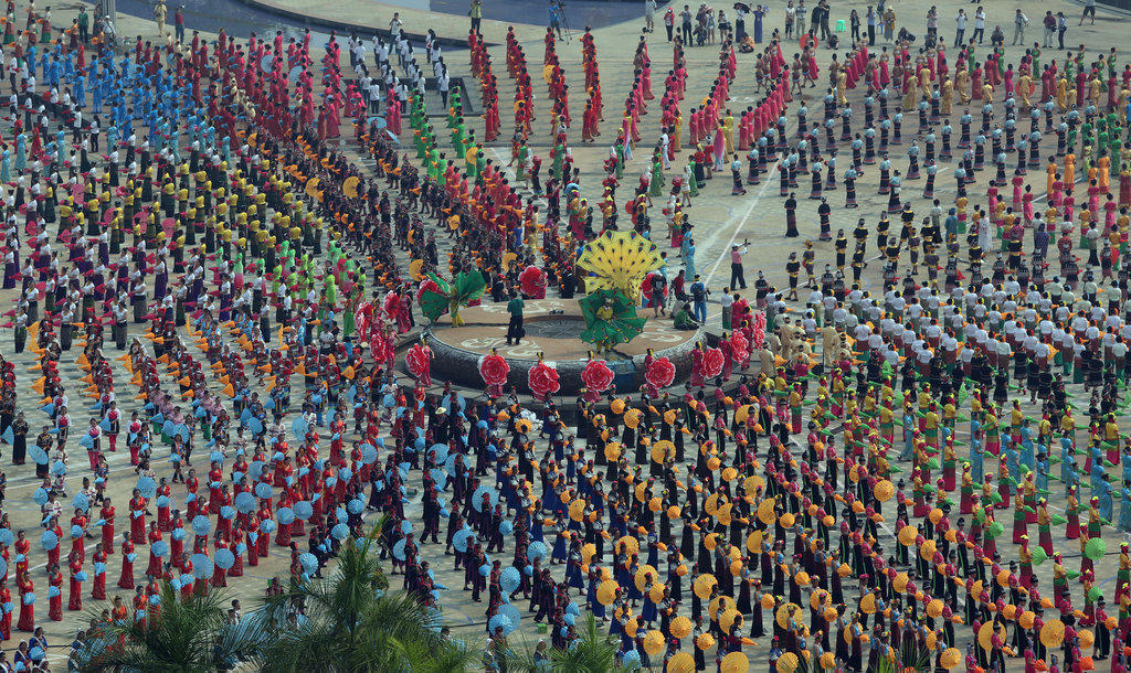 西雙版納萬人齊跳紙傘舞 創(chuàng)吉尼斯世界紀(jì)錄(圖)