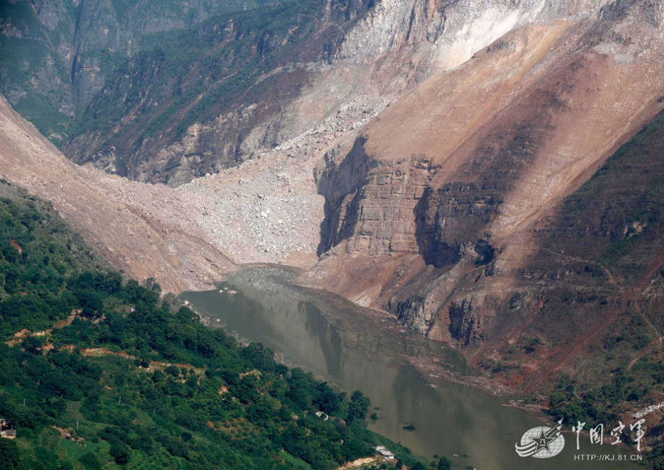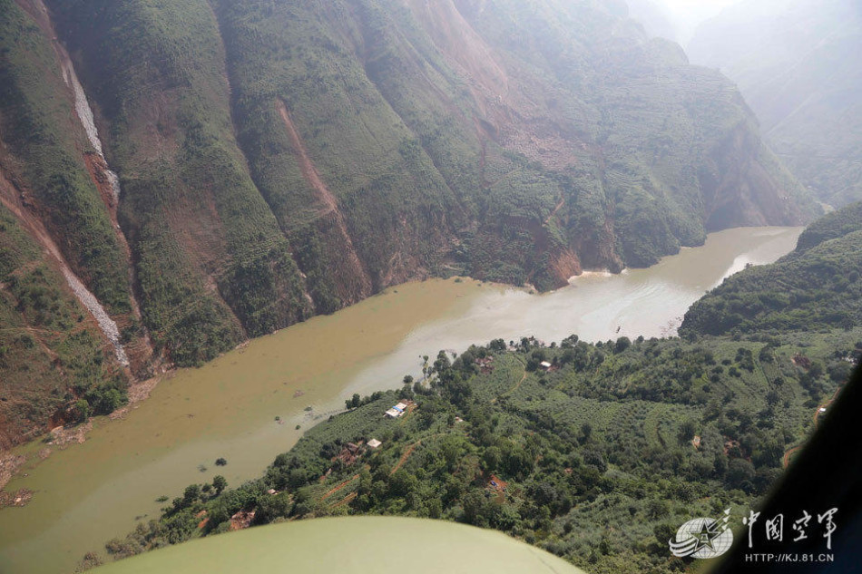 堰塞湖水位不斷上升,半山腰的村莊逐漸被水淹沒。