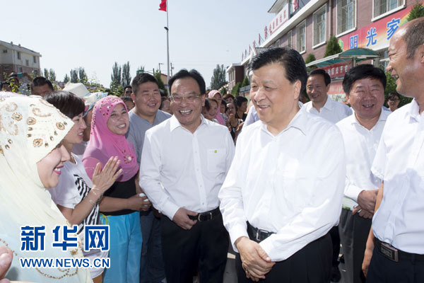 這是7月10日,劉云山在銀川市新勝村與群眾親切交談。新華社記者王曄攝
