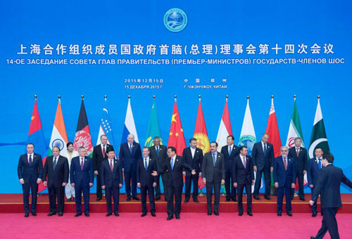 中國(guó)日?qǐng)?bào)12月15日電(記者 李瀟坤)15日上午,李克強(qiáng)總理在鄭州國(guó)際會(huì)展中心與出席上海合作組織成員國(guó)政府首腦(總理)理事會(huì)第14次會(huì)議的成員國(guó)、觀察員國(guó)領(lǐng)導(dǎo)人和國(guó)際組織負(fù)責(zé)人集體合影。(新華社 王曄 攝)