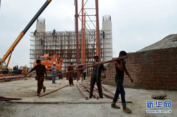 拉合爾軌道交通橙線項(xiàng)目是中巴經(jīng)濟(jì)走廊首個(gè)正式啟動(dòng)的交通基礎(chǔ)設(shè)施項(xiàng)目,也是巴基斯坦首條輕軌線路。該項(xiàng)目全長約26公里,總投資16.26億美元,由中國鐵路總公司和中國北方工業(yè)公司聯(lián)合承建,2015年4月20日簽訂總承包合同,合同工期27個(gè)月。項(xiàng)目建成后將極大地緩解擁有500多萬人口的拉合爾市的交通壓力。同時(shí),該項(xiàng)目的建設(shè)將為當(dāng)?shù)貏?chuàng)造上萬個(gè)就業(yè)機(jī)會(huì)。圖為巴基斯坦工人在拉合爾軌道交通橙線項(xiàng)目的建設(shè)工地上。新華網(wǎng)發(fā)