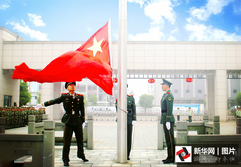 2016年10月3日,國慶節(jié)是新戰(zhàn)友入營后過的第一個節(jié)日,浙江消防總隊新訓團新戰(zhàn)友第一次參加部隊升國旗儀式。
