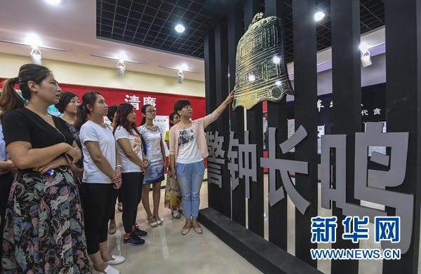 2017年10月18日上午,舉世矚目的中國(guó)共產(chǎn)黨第十九次全國(guó)代表大會(huì)在北京隆重開(kāi)幕。 2200多名黨代表以意氣風(fēng)發(fā)的精神狀態(tài)和一往無(wú)前的奮斗姿態(tài)展現(xiàn)在世人面前,展示出一個(gè)百年大黨浴火再塑后的嶄新形象。征服一座高峰,需要超越的是自我。黨的十八大以來(lái),以習(xí)近平同志為核心的黨中央帶領(lǐng)中國(guó)共產(chǎn)黨以無(wú)私的斗爭(zhēng)精神,開(kāi)啟了一場(chǎng)自我革命、自我再塑的偉大工程。鐵腕反腐、凝心聚魂、正風(fēng)肅紀(jì)、堅(jiān)毅擔(dān)當(dāng)……重錘之下,火花四射。一個(gè)個(gè)動(dòng)人心魄的瞬間,匯聚成壯麗奪目的長(zhǎng)卷,在革命性鍛造中,新時(shí)代黨的面貌發(fā)生了前所未有的變化。 2017年6月25日,河北省棗強(qiáng)縣干部家屬參觀廉政教育基地。 新華社記者 李曉果 攝