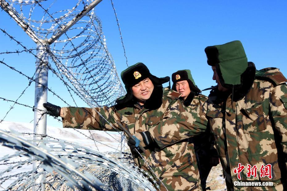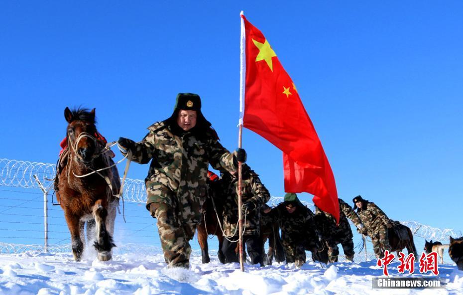 12月30日,駐守在祖國西北邊陲的武警新疆阿勒泰邊防支隊(duì)托普鐵熱克邊防派出所官兵,在中哈邊境一線的雪原上巡邏踏查,以維護(hù)元旦假期邊境的安寧。王友波 攝