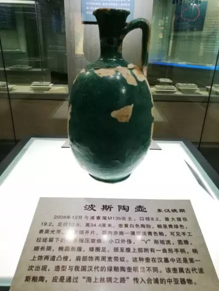 這件東漢晚期的波斯陶壺就是習(xí)近平參觀(guān)的眾多展品之一。該壺屬古代波斯釉陶,應(yīng)是通過(guò)“海上絲綢之路”傳入合浦的中亞器物。