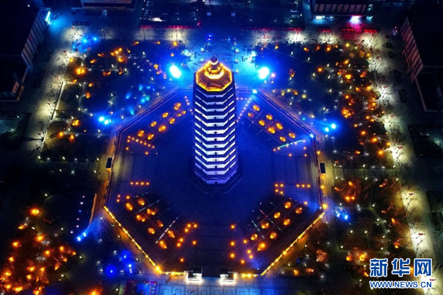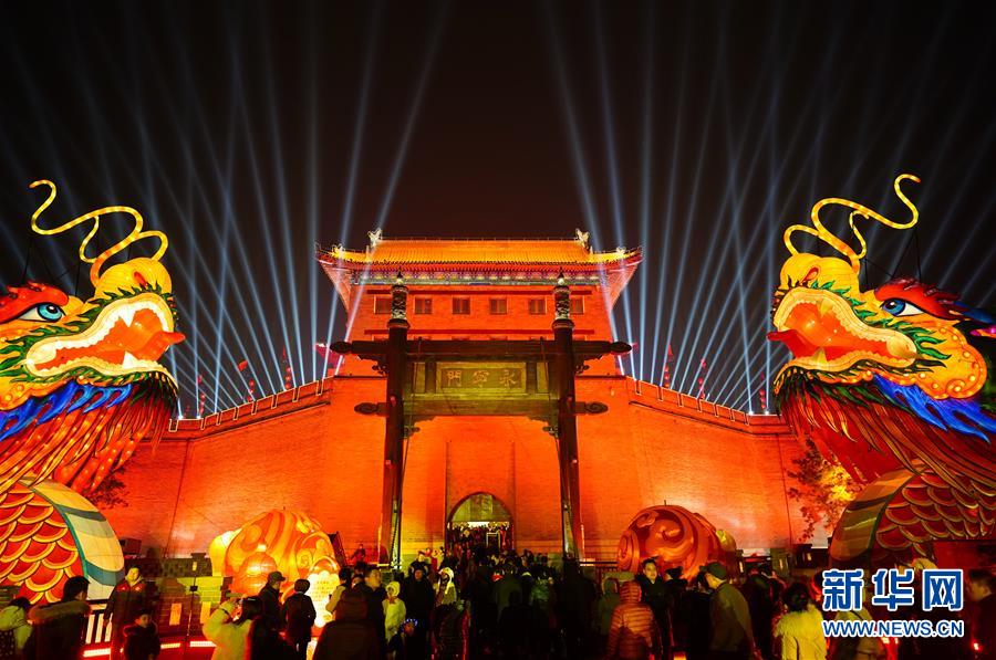1月28日晚,2019年西安城墻新春燈會(huì)在西安明城墻開幕,五個(gè)燈區(qū)的萬(wàn)盞花燈璀璨綻放,把西安裝點(diǎn)得金碧輝煌。新華社記者 劉瀟 攝