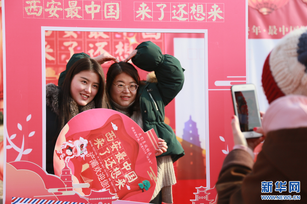 市民在“西安最中國(guó) 來了還想來”展板前合影。新華網(wǎng) 申博望 攝