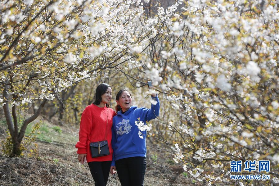 3月14日,游客在湖北省襄陽市襄城區(qū)蔡家洼櫻桃溝內(nèi)賞花拍照。 隨著氣溫回升,各地春花競相綻放。 新華社發(fā)(楊東 攝)