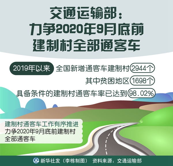 交通運(yùn)輸部新聞發(fā)言人吳春耕在當(dāng)日召開的專題新聞發(fā)布會(huì)上表示,交通運(yùn)輸部已經(jīng)連續(xù)5年將建制村通客車作為更貼近民生的實(shí)事大力推進(jìn),平均每年完成通客車建制村7000個(gè)以上。目前全國(guó)仍有1萬多個(gè)具備條件的建制村暫未通客車,要在明年9月底前全面完成建制村通客車兜底性目標(biāo),時(shí)間緊、任務(wù)重,但也必須要完成。