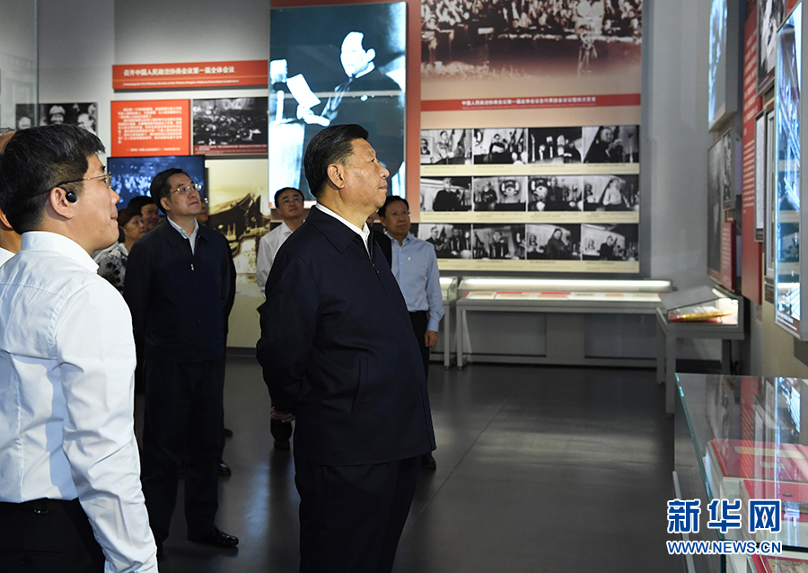 9月12日,中共中央總書記、國家主席、中央軍委主席習(xí)近平視察中共中央北京香山革命紀(jì)念地。這是習(xí)近平在香山革命紀(jì)念館參觀《為新中國奠基》主題展覽。 新華社記者 饒愛民 攝
