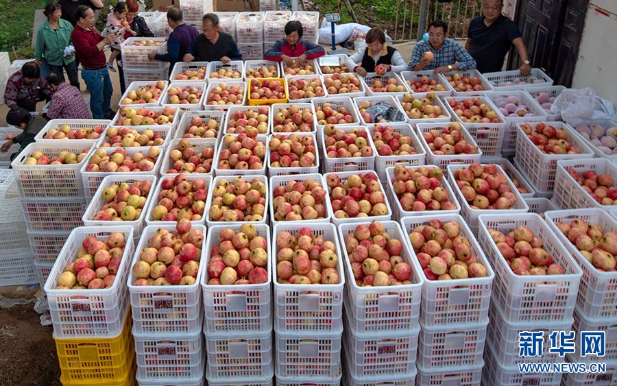 洛寧縣上戈鎮(zhèn)紅彤彤的蘋果掛滿枝頭,果農(nóng)采摘時(shí)臉上掛滿笑容。