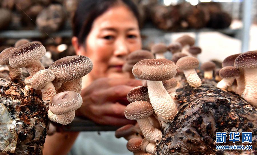 新安縣石井鎮(zhèn)看到大棚里的香菇長(zhǎng)勢(shì)喜人,利用秸稈做原料種植香菇使秸稈變廢為寶。