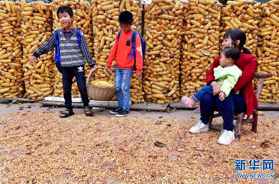 宜陽(yáng)縣蓮莊鎮(zhèn)、張塢鎮(zhèn)公路兩旁,村民門前一堆堆一串串的金黃色玉米。