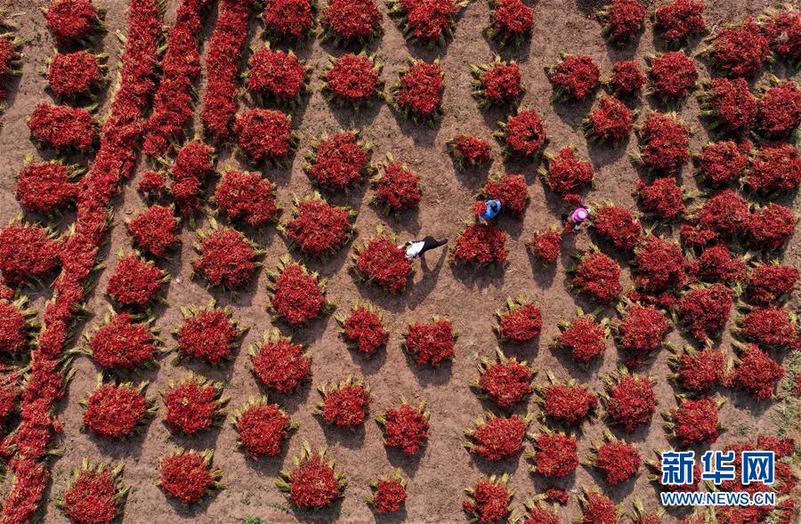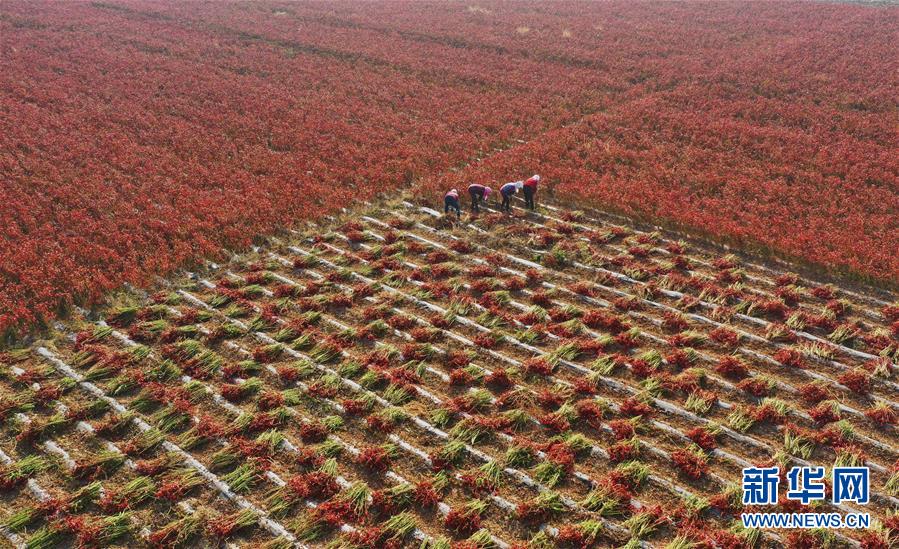 10月23日,河北省灤南縣胡各莊鎮(zhèn)東梁各莊村的村民在收獲望天椒。 近日,河北省唐山市灤南縣胡各莊鎮(zhèn)東梁各莊村的2000畝望天椒陸續(xù)成熟,農(nóng)民搶抓農(nóng)時適時收獲。近年來,該縣以“一村一品”種養(yǎng)殖模式調(diào)整農(nóng)業(yè)產(chǎn)業(yè)結(jié)構(gòu),促進農(nóng)民增收,推進鄉(xiāng)村振興。 新華社記者楊世堯攝