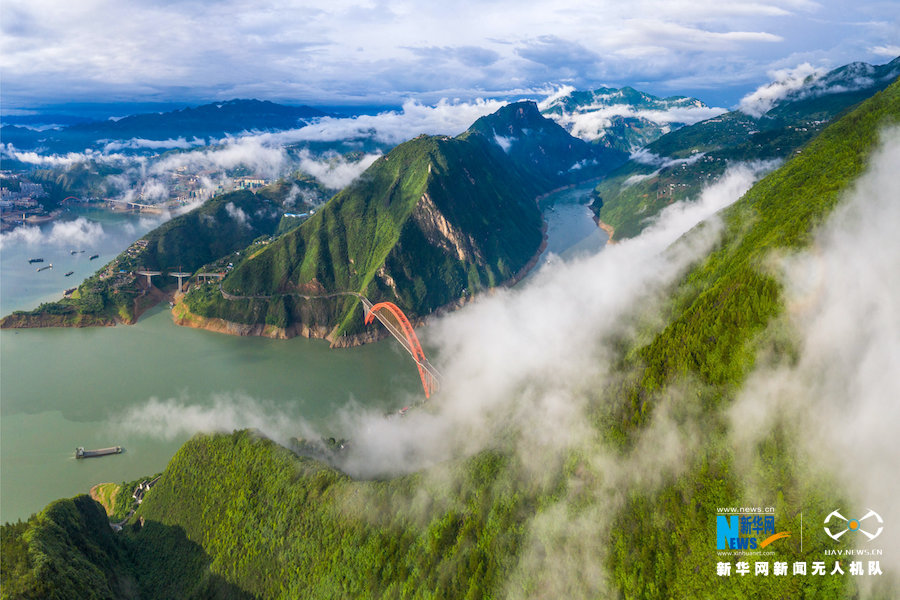 雨后天晴,碧綠的山間騰起縷縷云霧,巫峽景色讓人如癡如醉。新華網(wǎng)發(fā)(朱云平 攝)