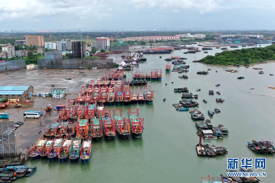 8月16日,無人機(jī)航拍漁港內(nèi)的漁船。新華網(wǎng) 劉君 攝