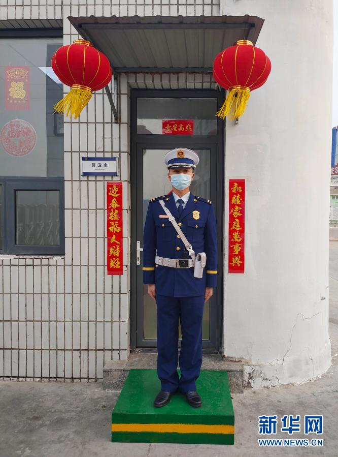 2月12日,何正洋在天津市寶坻區(qū)消防救援支隊東城北路消防救援站執(zhí)勤站崗。新華社發(fā)
