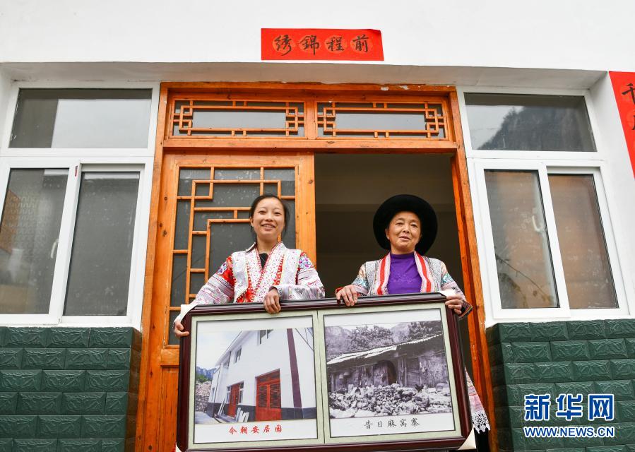 2月20日,在貴州省畢節(jié)市黔西縣新仁苗族鄉(xiāng)化屋村麻窩寨易地扶貧搬遷集中安置點(diǎn),苗族女孩王代玉(左)與母親楊文梅在自家新房前展示易地扶貧搬遷前后的對比照片。近年來,化屋村在實(shí)施易地扶貧搬遷的同時,大力發(fā)展特色種植、養(yǎng)殖、旅游等產(chǎn)業(yè),村里迎來跨越式發(fā)展。 新華社記者 楊文斌 攝