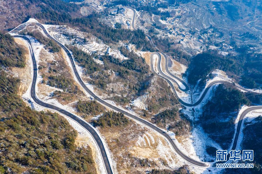 這是1月8日在湖北省秭歸縣茅坪鎮(zhèn)拍攝的盤山公路(無人機(jī)照片)。 近年來,秭歸縣積極推進(jìn)農(nóng)村公路建設(shè),極大方便了山區(qū)群眾出行。 新華社發(fā)(鄭家裕 攝)