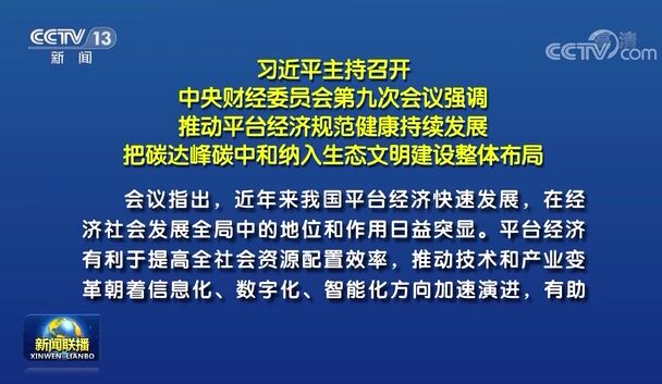 會議聽取了國家發(fā)展改革委、中國人民銀行、國家市場監(jiān)管總局關(guān)于促進(jìn)平臺經(jīng)濟(jì)健康發(fā)展的匯報,聽取了國家發(fā)展改革委、生態(tài)環(huán)境部、自然資源部關(guān)于實現(xiàn)碳達(dá)峰、碳中和的總體思路和主要舉措的匯報。