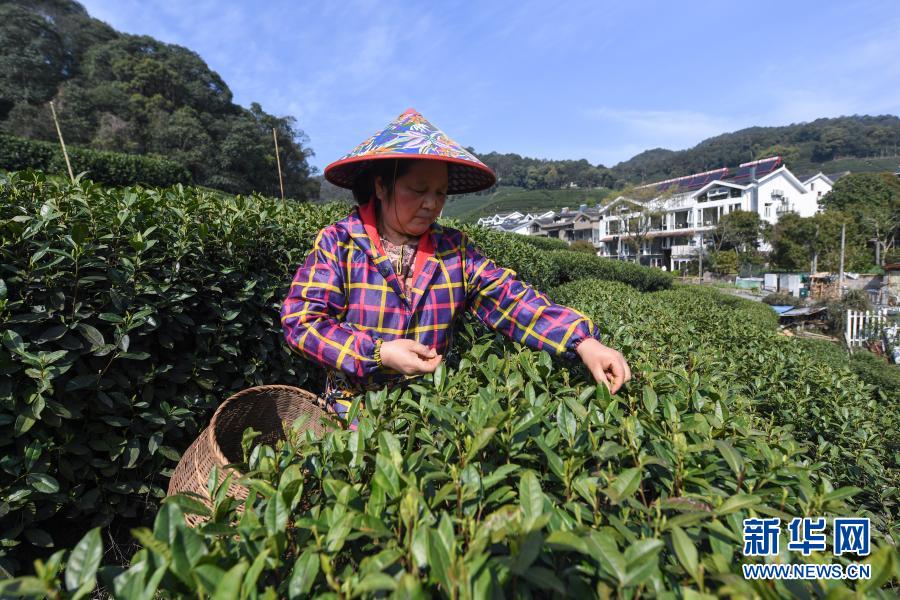 3月23日,杭州梅家塢村的茶農(nóng)在采摘西湖龍井“明前茶”。