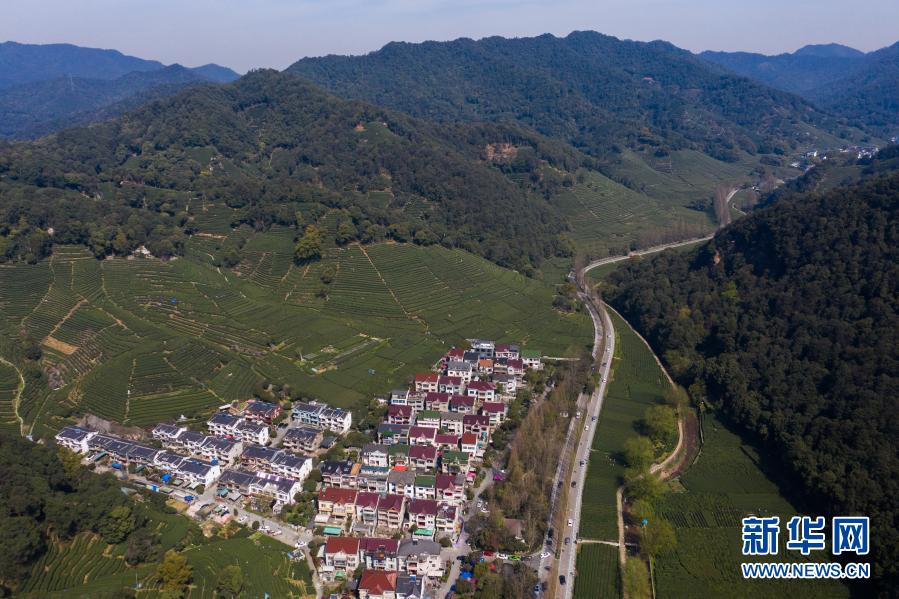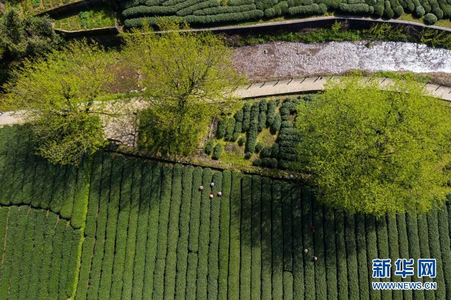 3月23日拍攝的杭州梅家塢村的茶園(無(wú)人機(jī)照片)。新華社記者 徐昱 攝