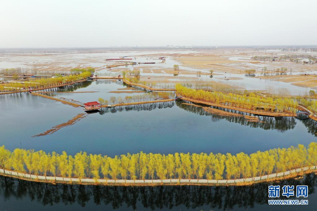 這是3月16日拍攝的白洋淀風(fēng)光(無(wú)人機(jī)照片)。新華社記者 牟宇 攝