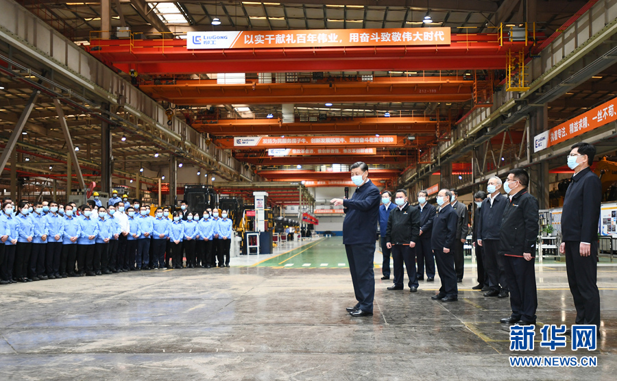 當(dāng)天下午,習(xí)近平來到柳州市考察調(diào)研。在廣西柳工集團有限公司,習(xí)近平先后走進公司展廳、研發(fā)實驗中心、挖掘機裝配廠等,聽取企業(yè)發(fā)展情況介紹,察看主要產(chǎn)品展示,同企業(yè)職工和技術(shù)研發(fā)人員親切交談。習(xí)近平強調(diào),制造業(yè)高質(zhì)量發(fā)展是我國經(jīng)濟高質(zhì)量發(fā)展的重中之重,建設(shè)社會主義現(xiàn)代化強國、發(fā)展壯大實體經(jīng)濟,都離不開制造業(yè),要在推動產(chǎn)業(yè)優(yōu)化升級上繼續(xù)下功夫。只有創(chuàng)新才能自強、才能爭先,要堅定不移走自主創(chuàng)新道路,把創(chuàng)新發(fā)展主動權(quán)牢牢掌握在自己手中。要堅持黨對國有企業(yè)的全面領(lǐng)導(dǎo),堅持加強黨的領(lǐng)導(dǎo)和完善公司治理相統(tǒng)一,在深化企業(yè)改革中搞好黨的建設(shè),充分發(fā)揮黨組織在企業(yè)改革發(fā)展中的領(lǐng)導(dǎo)核心作用。