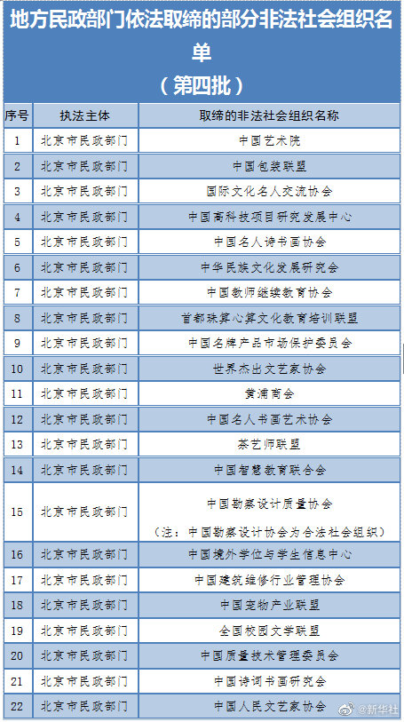 民政部7日公布第四批地方民政部門近年來依法取締的部分非法社會組織名單,包括中國藝術(shù)院、中國境外學(xué)位與學(xué)生信息中心等64家。民政部提示社會公眾,如果發(fā)現(xiàn)名單中的非法社會組織仍在開展活動的,請依法向公安機(jī)關(guān)報案。同時,民政部還提示,在與社會組織開展合作或參與其活動時,可通過“中國社會組織政務(wù)服務(wù)平臺”(www.chinanpo.gov.cn)、“中國社會組織動態(tài)”政務(wù)微信(微信號:chinanpogov)核實(shí)其身份,避免上當(dāng)受騙。(記者高蕾)