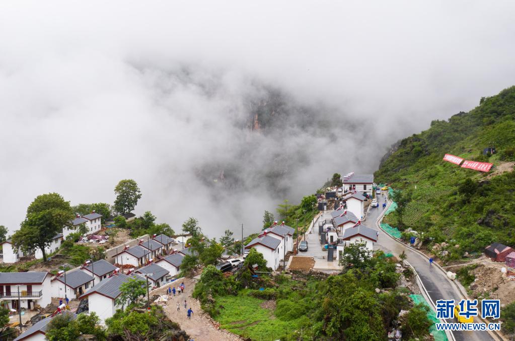 2020年6月30日,一輛客運(yùn)面包車行駛在四川涼山州布拖縣阿布洛哈村新完工的村道上(無(wú)人機(jī)照片)。新華社記者 江宏景 攝