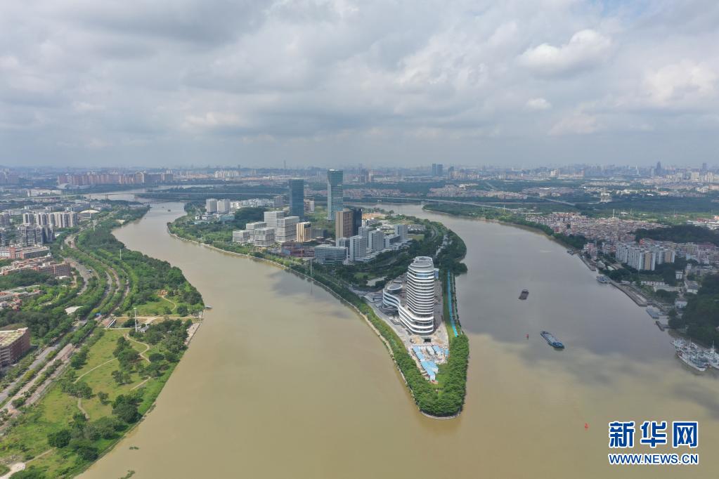 這是廣州國(guó)際生物島(5月23日攝,無(wú)人機(jī)照片)。新華社發(fā)