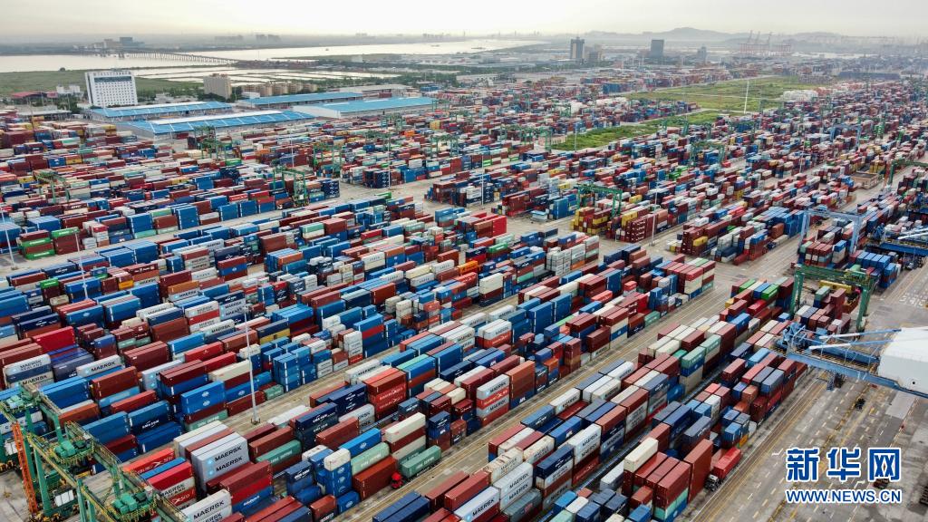 廣州港南沙港區(qū)碼頭堆場(chǎng)(7月17日攝,無(wú)人機(jī)照片)。新華社記者 耿馨寧 攝