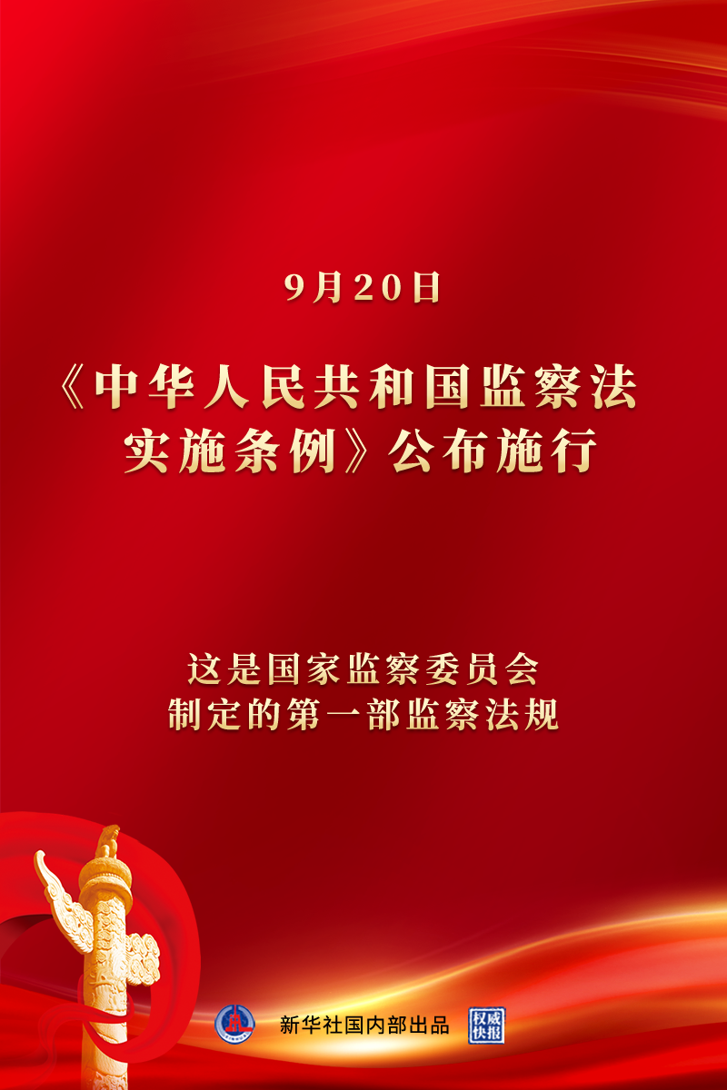 9月20日,《中華人民共和國監(jiān)察法實(shí)施條例》全文公布并于當(dāng)日起施行,這是國家監(jiān)察委員會(huì)成立后制定的第一部監(jiān)察法規(guī)。