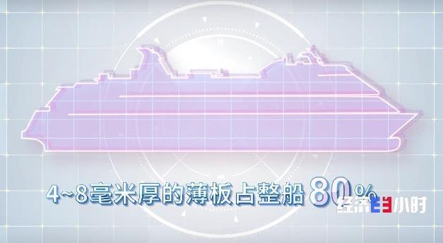在郵輪建造過程中,不僅線纜布置復(fù)雜,重量也是個極為敏感的因素。首艘國產(chǎn)郵輪船身自重約6.5萬噸,自重每增加1噸,意味著登船物資或人數(shù)就要減少,為了從源頭控制重量,它大量使用了4毫米到8毫米的薄形鋼板。