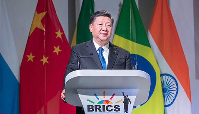 金磚國家要順應(yīng)歷史大勢,把握發(fā)展機(jī)遇,合力克服挑戰(zhàn),為構(gòu)建新型國際關(guān)系、構(gòu)建人類命運(yùn)共同體發(fā)揮建設(shè)性作用。