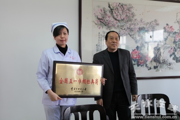 3月18日下午,天水市總工會黨組書記、常務(wù)副主席郭世文,副主席劉云芳,經(jīng)審委員會主任張虎琴,天水市衛(wèi)生和計(jì)劃生育委員會黨組副書記石懷智蒞臨市三院,代表中華全國總工會,將“全國五一巾幗標(biāo)兵崗”榮譽(yù)授予我院精神科護(hù)理服務(wù)集體。