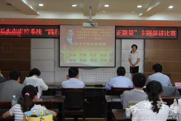 為深入貫徹落實(shí)黨的十八大和十八屆四中全會精神,積極培育和踐行社會主義核心價(jià)值觀,深入學(xué)習(xí)、廣泛宣傳疾控系統(tǒng)典型人物的先進(jìn)事跡,彰顯疾控精神,凝聚疾控正能量, 5月26日,天水市疾控系統(tǒng)在中心六樓會議室開展了以“踐行核心價(jià)值觀·傳遞疾控正能量”為主題的演講比賽。市疾控中心領(lǐng)導(dǎo)班子及部分職工和來自全市7個(gè)縣區(qū)疾控中心負(fù)責(zé)人到場助威。來自全市7個(gè)縣(區(qū))疾控機(jī)構(gòu)和市本級疾控中心的17位選手登臺競技。比賽為了體現(xiàn)公平公正,特地邀請了市文工團(tuán)、天水師院的專家擔(dān)任演講比賽的評委。