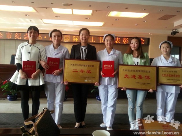 在全市中醫(yī)護理技能大賽上,由天水市三院護理部主任雷志潔帶隊,田蕊麗、羅芳弟、王霞3人組成的市第三院代表隊,以良好的職業(yè)風(fēng)范、嫻熟的技能手法、人性化的專業(yè)服務(wù)、敏捷的應(yīng)變能力,一舉奪得刮痧項目一等獎、拔火罐項目二等獎以及團體二等獎的好成績。