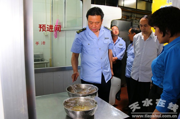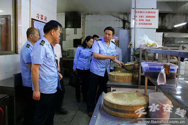 為做好高考期間餐飲食品安全保障工作,6月5日下午,天水市食品藥品監(jiān)督管理局黨委書記、局長(zhǎng)陳克孝帶領(lǐng)市局相關(guān)科室、市食品稽查局、秦州區(qū)食品藥品監(jiān)管局執(zhí)法人員,對(duì)高考監(jiān)考老師定點(diǎn)就餐的2家餐飲單位和考點(diǎn)附近小型餐館進(jìn)行了重點(diǎn)監(jiān)督檢查。